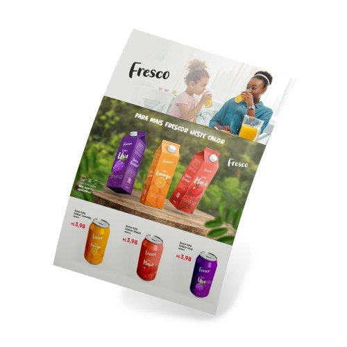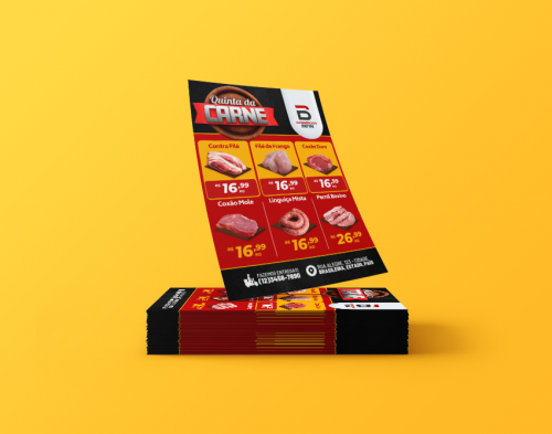 Flyer: Normalmente menor, indicado para promoções rápidas e distribuição ágil, chamando atenção de forma objetiva e direta.